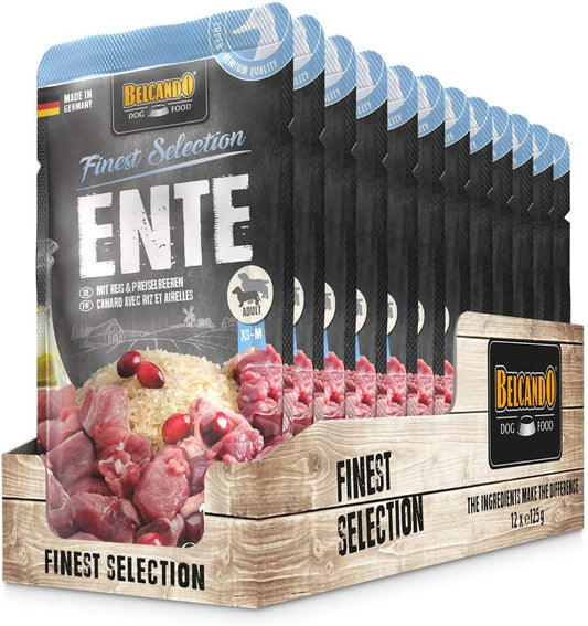 Belcando Anatra con riso e mirtilli rossi Alimento completo umido in busta monoporzione (12 buste da 125 gr / 6 buste 300 gr)