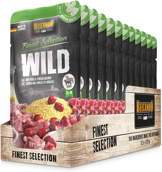Belcando Selvaggina con miglio e mirtilli rossi Alimento completo umido in busta monoporzione (12 buste da 125 gr / 6 buste 300 gr)