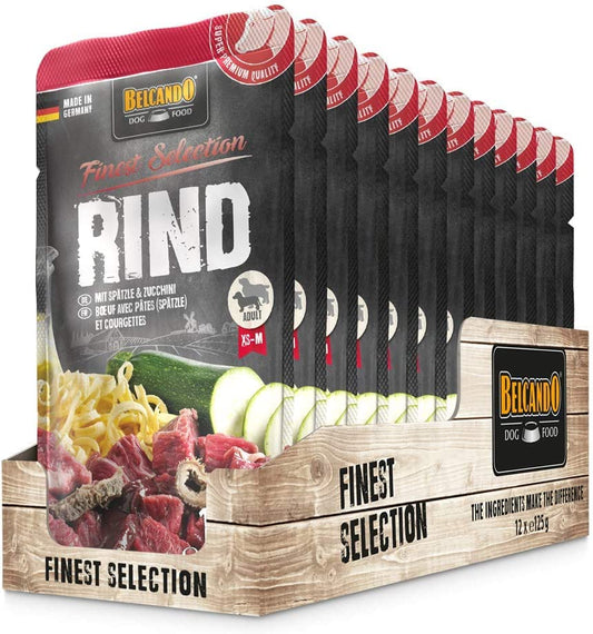 Belcando Manzo con"spätzle" e zucchine Alimento completo umido in busta monoporzione (12 buste da 125 gr / 6 buste 300 gr)