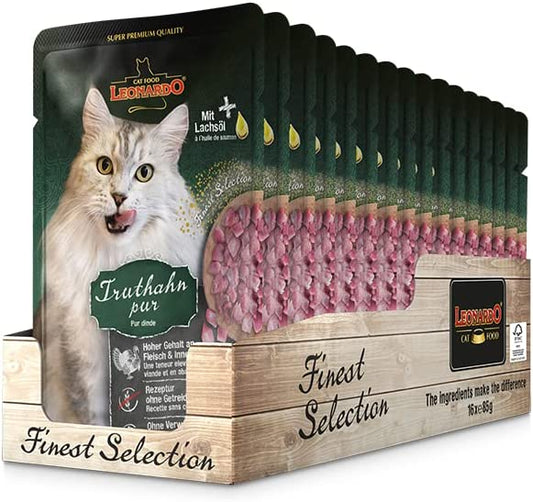 LEONARDO® Finest Selection Buste [16x85g Pura carne di tacchino] | Cibo umido senza cereali per gatti adulti
