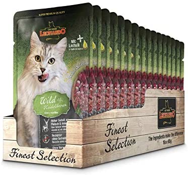 LEONARDO® Finest Selection Buste [16x85g Selvaggina + Mirtilli] | Cibo umido senza cereali per gatti adulti