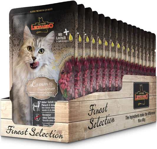 LEONARDO® Finest Selection Buste [16x85g Agnello + Cranberries] | Cibo umido senza cereali per gatti adulti