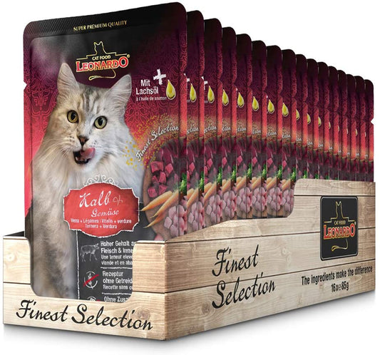 LEONARDO® Finest Selection Buste [16x85g Vitello + Verdure] | Cibo umido senza cereali per gatti adulti