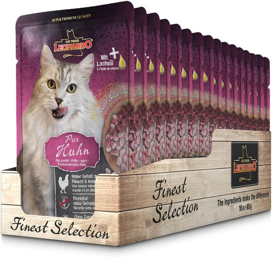 LEONARDO® Finest Selection Buste[16x85g Pollo - puro] | Cibo umido senza cereali per gatti Adulti