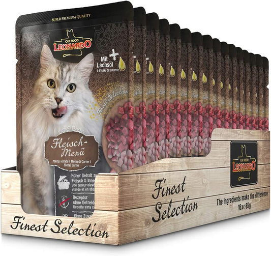 LEONARDO® Finest Selection Buste [16x85g Menu di Carne] | Cibo umido senza cereali per gatti adulti
